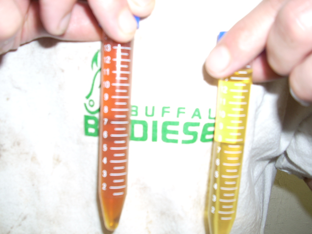 Oil Quality after processing, less than 1% MIU. Yes the oil on the right is USED |